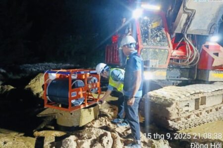 Thí nghiệm xác định hướng cáp, vị trí bó cáp dự ứng lực. Phục vụ công tác định vị, thi công gia cường các