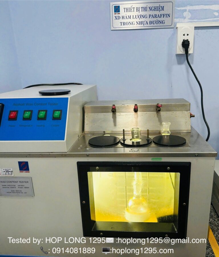 THÍ NGHIỆM KIỂM TRA CHẤT LƯỢNG MẪU NHỰA ĐƯỜNG BITUMEN 60/70By Hợp Long / 07/01/2026 THÍ NGHIỆM KIỂM TRA CHẤT LƯỢNG MẪU NHỰA ĐƯỜNG BITUMEN 60/70. Thí nghiệm xác định Độ nhớt động học. Thí nghiệm xác định hàm lượng Paraphin.———————————————————CÔNG TY TNHH ĐẦU TƯ XD VÀ TM HỢP LONGPhòng thí nghiệm và KĐ chất lượng LAS-XD 47.001 161 Ngô Sĩ Liên, phường Nghĩa Lộ, tỉnh Quảng Ngãi : 0914081889Mail : [email protected] Website: hoplong1295.com